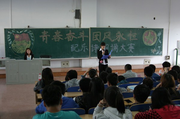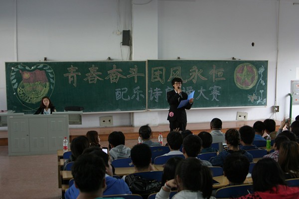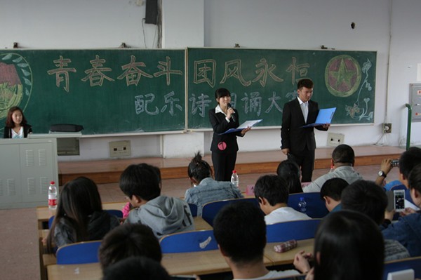 2014年5月14日,我院在六教多媒体六成功举办了“青春奋斗 团风永恒”配乐诗朗诵大赛决赛。出席此次大赛的有理学院党委副书记王禹章、辅导员赵擎昊、李晓航,分团委副书记刘亚楠,马东兴,社联主席杨泽林,于丹,上届配乐诗朗诵大赛冠军孙俪,部分学生干部和全体大一同学。
