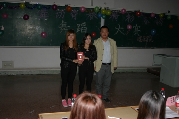 在比赛过程中,选手们伴随着音乐的律动,激情四射,用绚烂的服饰和充满活力的舞蹈给观众带来了一场视听盛宴。最后经过评委们公平、公正、公开的打分,0813401班作品《What’s your name》夺得此次大赛的桂冠,0813405班作品《cry cry》获得本次大赛的二等奖,0813403班作品《狐狸叫》和0813404班作品《咱们结婚吧》获得三等奖,0813407班作品《bad girl good girl》获得最具活力奖,0813402班作品《B-boy》获得最具创意奖,0813406班作品舞蹈串烧《爱》、《sorry sorry》、《咋了爸爸》获得最具魅力奖。最后,由理学院党委副书记王禹章、辅导员李晓航、赵擎昊为获奖选手颁发证书并对参赛选手进行点评和鼓励。此次舞蹈比赛在全体师生共同努力下圆满的落下了帷幕。