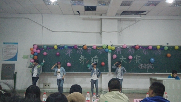 2014年4月29日晚,在六教多媒体一,我院成功举办了首届“舞动青春精彩飞扬”舞蹈大赛。出席此次大赛的有我院党委副书记王禹章,辅导员老师赵擎昊、李晓航以及大部分学生干部和大一全体同学。