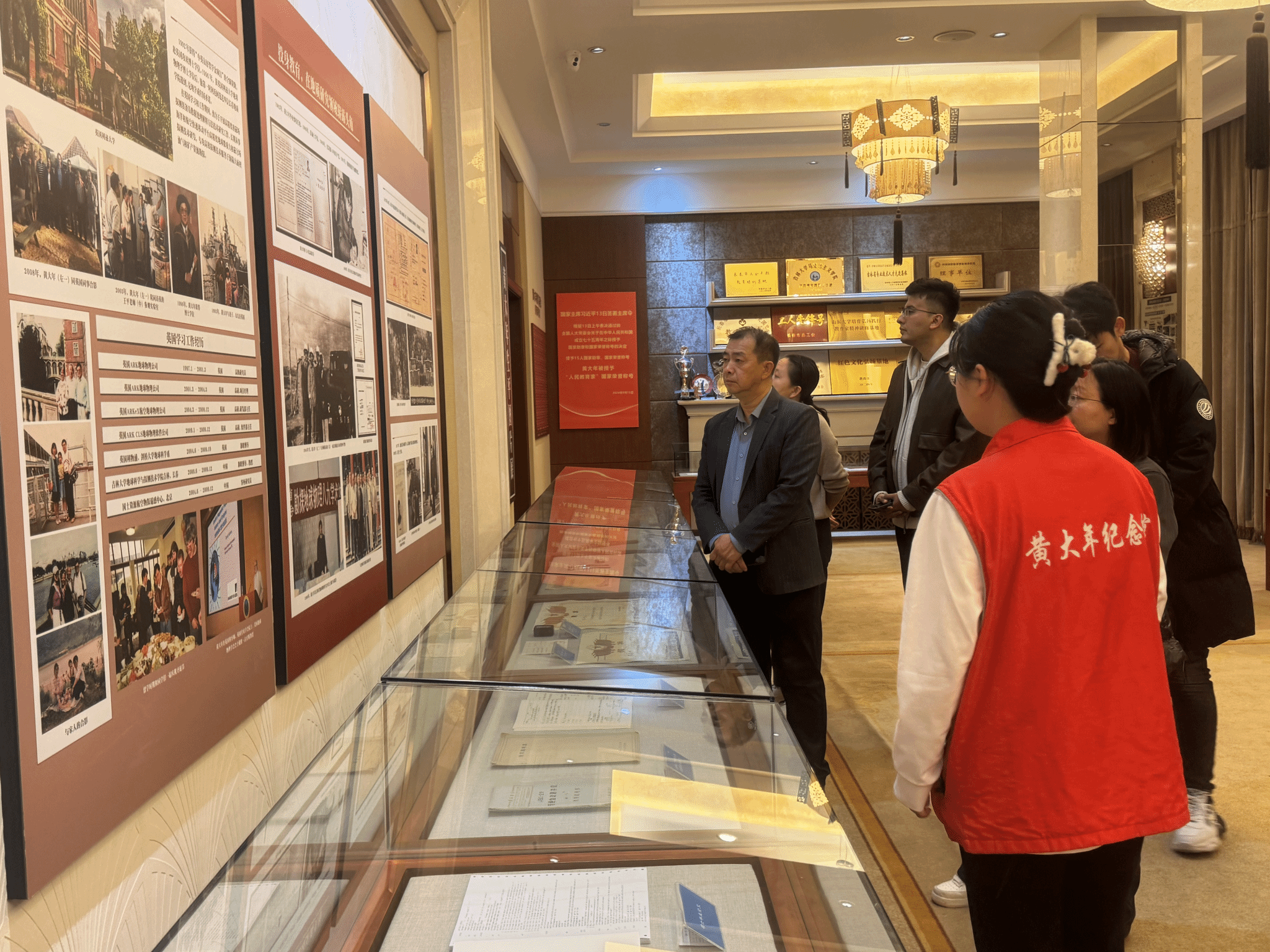 在讲解员的带领下,师生依次参观“大年情怀”“科研报国”“教书育人”等展区,透过手稿、模型、影像,深入了解黄大年放弃国外优渥条件、毅然回国带领团队突破深地探测关键技术的感人事迹。