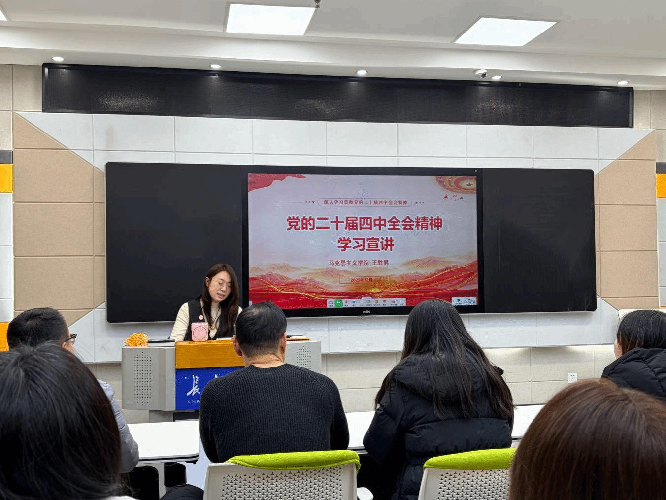 12月4日下午,数学与统计学院在知行楼A402召开党的二十届四中全会精神宣讲会,校宣讲团成员、马克思主义学院教师王胜男应邀作专题辅导。学院领导班子、教职工参会,党委书记李险峰主持。