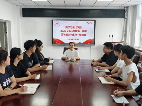 为夯实新学期团学工作基础、锤炼高素质学生骨干队伍,9月3日下午,数学与统计学院在六教1314会议室召开2025-2026学年第一学期团学组织学生骨干培训会。本次会议由学院党委副书记张欣主持,学院团学组织全体学生骨干参会。