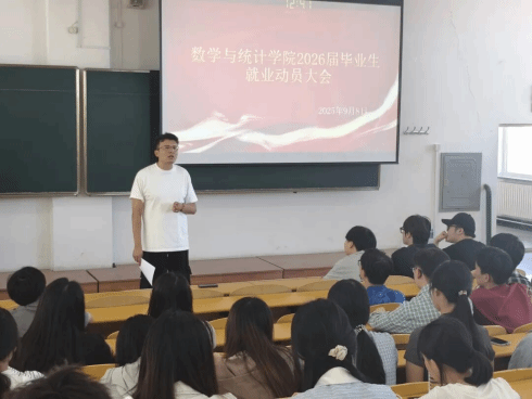 为扎实推进2026届毕业生就业服务工作,帮助毕业生建立科学就业认知,进一步激发其就业热情与主动意识,助力毕业生高质量就业,9月8日下午,学院在六教13楼东阶梯教室组织召开2026届毕业生就业工作动员大会。会议由伊斯坎代尔·图尔荪负责主持,2026届全体毕业生均到场参与。